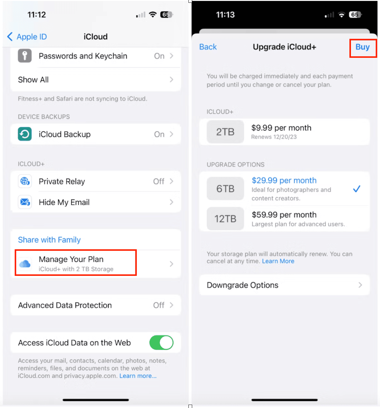 iCloud to najwygodniejszy sposób przechowywania dużych plików. Wszystkie iPhone'y są wyposażone w 5 GB wolnej przestrzeni dyskowej, ale jak jestem pewien, wiesz, że ta ilość zużywa się dość szybko. Za opłatą możesz przejść na usługę iCloud+, która zwiększa pojemność Twojego dysku aż do 12 TB.