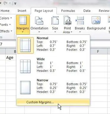 Powyższe kroki umożliwiają wyśrodkowanie wydrukowanego arkusza kalkulacyjnego w poziomie i w pionie za pomocą menu Marginesy, ale można również uzyskać dostęp do tego menu w inny sposób.