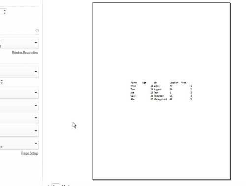 Następnie możesz zobaczyć, jak będzie wyglądał wydrukowany arkusz kalkulacyjny Excel na stronie, klikając przyciskPlikw lewym górnym rogu okna, a następnie kliknij przyciskWydrukowaćopcja. Na przykład mały przykładowy zestaw danych, który utworzyłem, po wyśrodkowaniu wygląda tak: