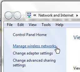 Krok 2: KliknijZarządzaj sieciami bezprzewodowymilink w kolumnie po lewej stronie okna.