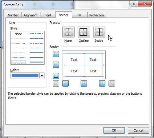 Jeśli chcesz wyróżnić granice każdej pojedynczej komórki, wybierz obie opcjeZarysIWewnątrzopcje.