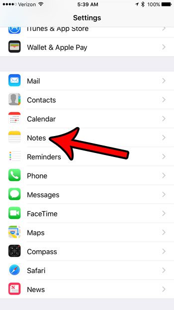 Krok 2: Przewiń w dół i wybierzNotatkiopcja.