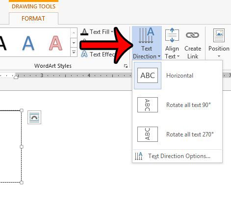 Krok 5: Potwierdź, żeFormatzakładka podNarzędzia do rysowaniajest zaznaczone, a następnie kliknijKierunek tekstui wybierz preferowany kierunek tekstu.