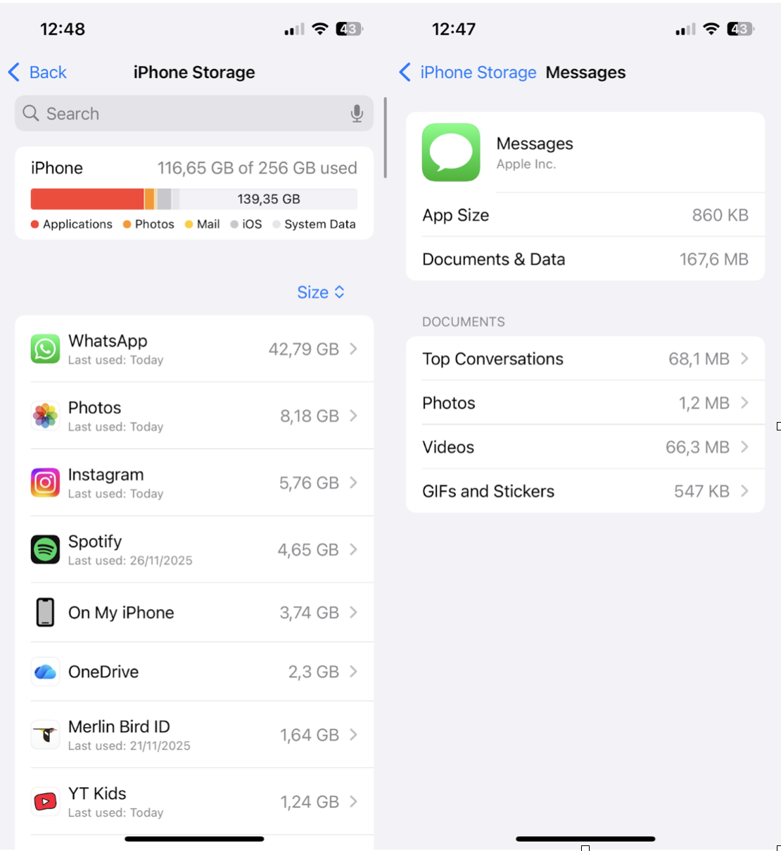 Ustawienia > Ogólne > Pamięć iPhone'a > Wiadomości.