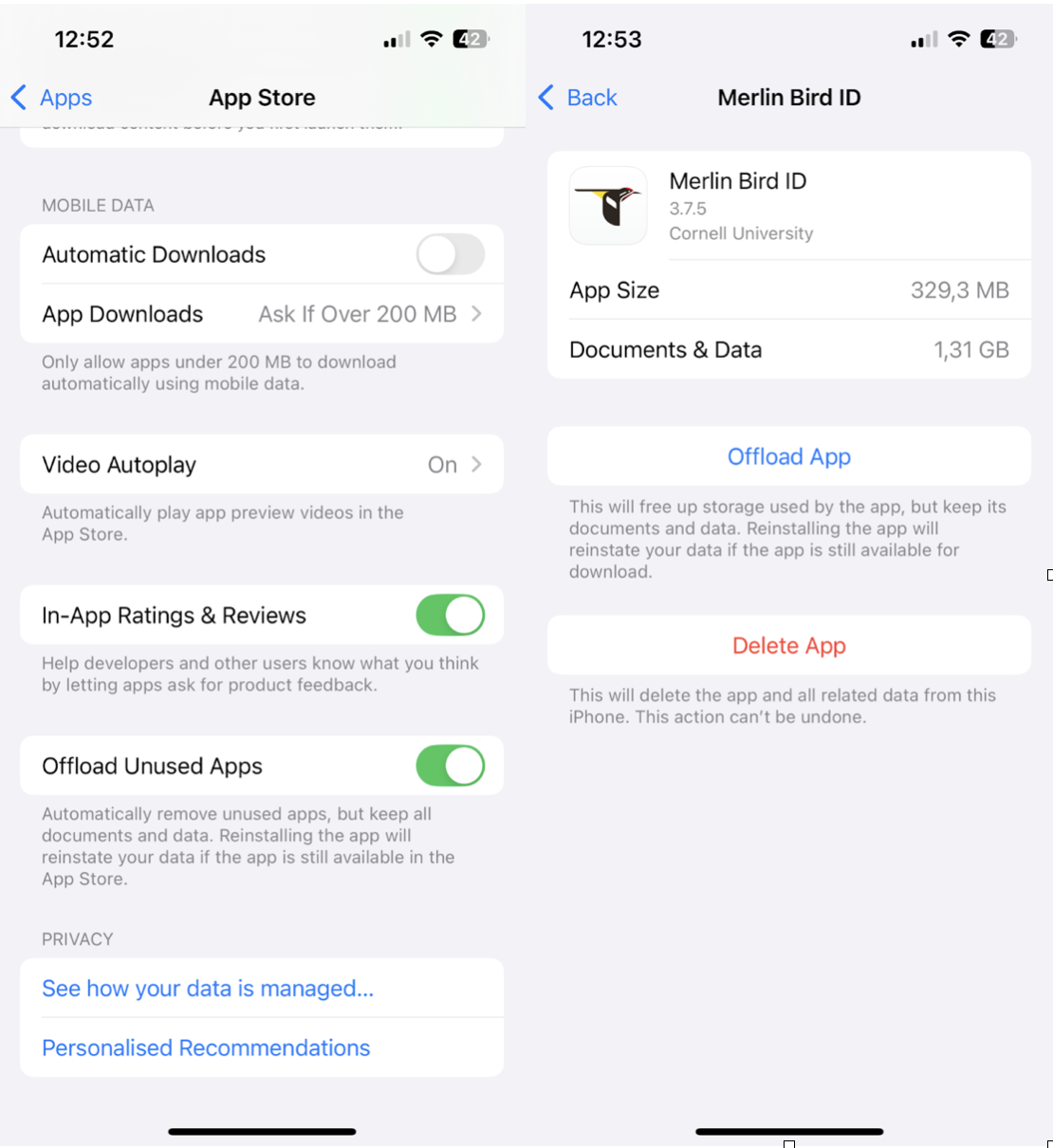 Znajdź aplikacje, których nie używasz zbyt często > Odciąż aplikację.