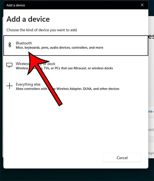 Krok 6: KliknijBluetoothwDodaj urządzenieokno.