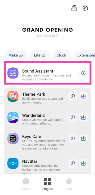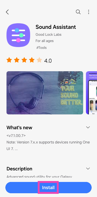 Krok 1:Przejdź do sklepu Galaxy ipobieraćtheAplikacja Asystent dźwięku. Ta aplikacja służy jako wtyczka do aplikacji Good Lock.