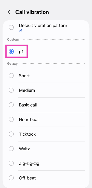 Krok 5:Wybierzniestandardowy wzór wibracjiz listy.