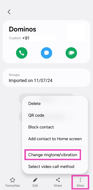 Krok 3:KliknijWięceji wybierzZmień dzwonek/wibrację.