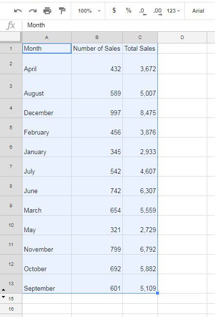 W tym przewodniku założono, że masz już plik Arkuszy Google zawierający dane, które chcesz przefiltrować.