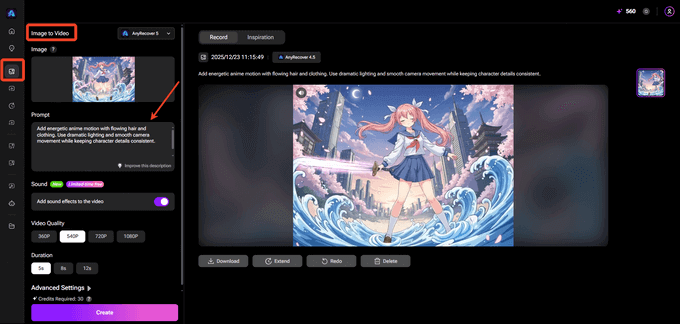 AnyCreate to platforma do tworzenia wideo AI, która pozwala użytkownikom generować wysokiej jakości filmy w stylu anime przy minimalnym wysiłku. Obsługuje: