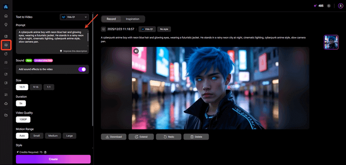 Opisujesz wygląd, styl, otoczenie i ruch postaci. Anycreate przekształca Twój opis w w pełni animowany film anime.