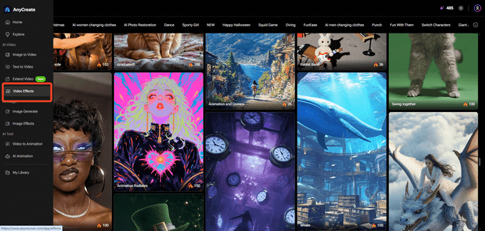 Aby uzyskać szybkie i stylowe rezultaty, Anycreate oferuje stałeefekty wideo anime.