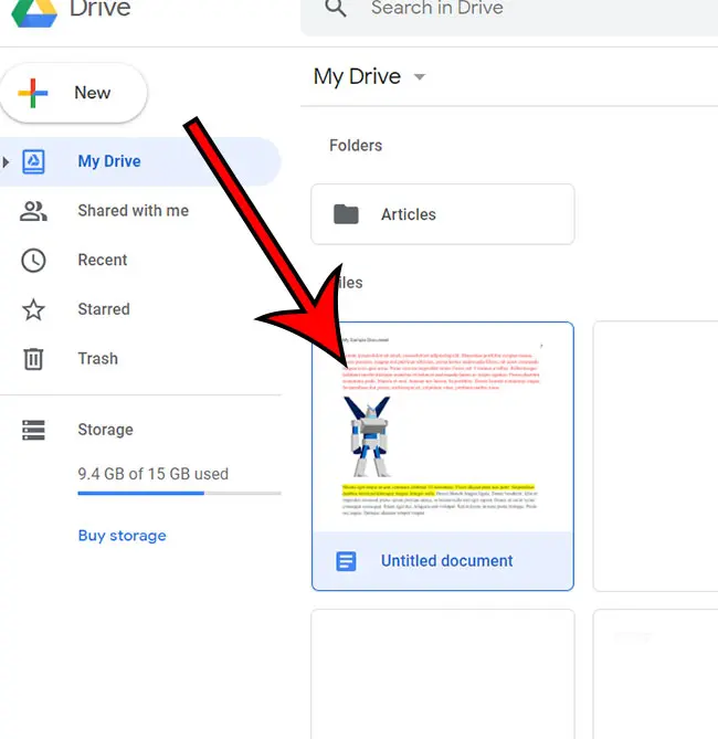 Krok 2: Wybierz dokument Dokumentów Google do usunięcia.