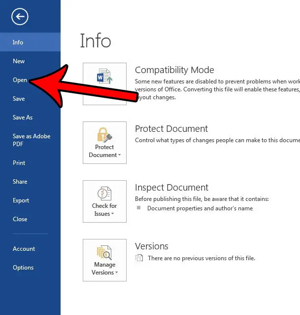 Krok 3: Wybierz zakładkę Otwórz znajdującą się po lewej stronie okna.
