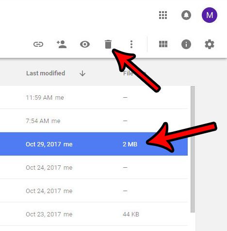 - Kliknij plik, który chcesz usunąć, a następnie kliknij ikonę kosza w prawym górnym rogu.