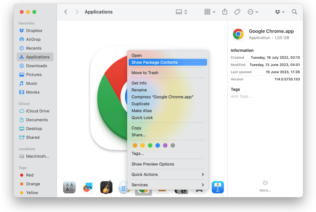Jeśli masz ochotę na pracę detektywistyczną, możesz ręcznie usunąć pliki językowe. Jak już wspomniano, są one przechowywane w Zawartości pakietu aplikacji zainstalowanych na komputerze Mac. Oto jak je znaleźć: