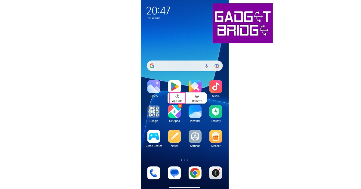 Krok 1:Przejdź do ekranu głównego smartfona Xiaomi. Naciśnij i przytrzymaj ikonę „Pobierz aplikacje”.