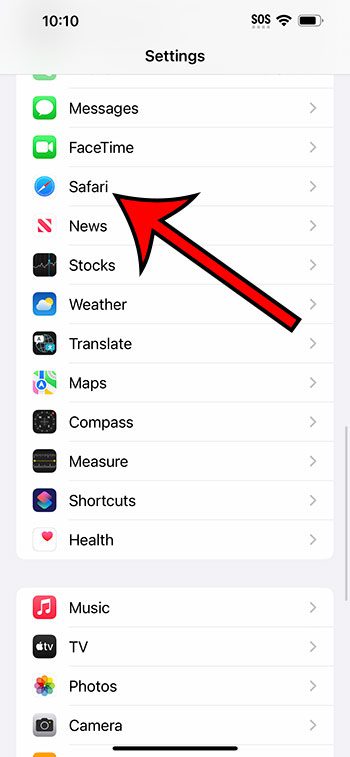 - Przewiń w dół i wybierz „Safari”.