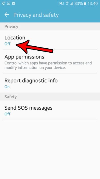 Krok 5: Naciśnij przycisk u góry ekranu, aby włączyć Lokalizację.