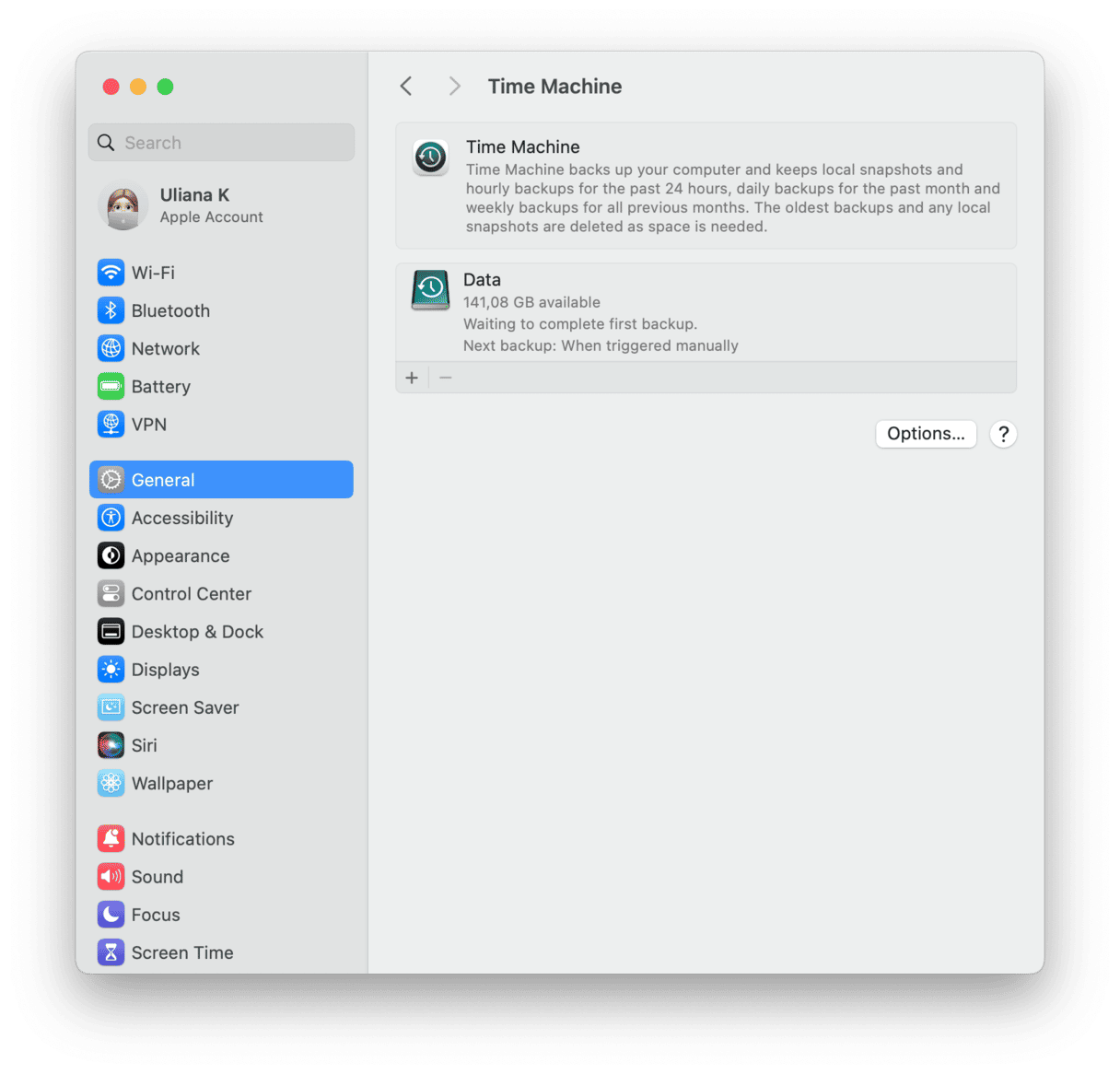 Teraz utworzenie pierwszej kopii zapasowej może zająć trochę czasu, w zależności od liczby posiadanych plików. Ale nie pomijaj tego kroku — kopia zapasowa pozwoli Ci przywrócić wszystkie dane na wypadek, gdyby coś poszło nie tak podczas przywracania MacBooka do ustawień fabrycznych.