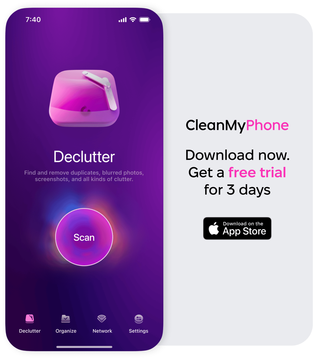Aby uzyskać najlepszą wydajność, niezwykle ważne jest zoptymalizowanie miejsca na iPhonie i zmniejszenie bałaganuWyczyść mój telefonto świetny sposób na uporządkowanie wszystkich urządzeń Apple. CleanMy®Phone nie tylko wykryje zduplikowane obrazy, ale także przeskanuje Twoje urządzenie w poszukiwaniu zrzutów ekranu i niewyraźnych zdjęć, dzięki czemu będziesz mógł szybko usunąć niepotrzebne pliki kilkoma dotknięciami. Korzystanie z CleanMy®Phone to świetny sposób na zaoszczędzenie czasu podczas porządkowania iPhone'a.