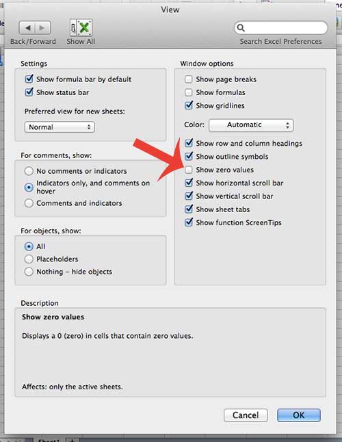 Jedynym wyjątkiem będzie sformatowanie komórki jako „Tekst”. Wartość zerowa zostanie wyświetlona w komórce sformatowanej jako tekst. Możesz dowiedzieć się więcej ntformatowanie komórek w programie Excel dla komputerów Mac 2011 tutaj.