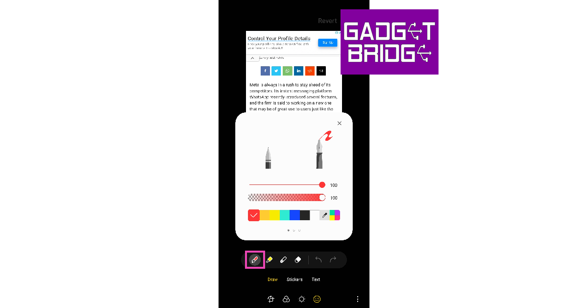 W ten sposób możesz zaznaczać, rysować i pisać na zrzucie ekranu na smartfonie z Androidem. Jeśli Twój smartfon z Androidem jest wyposażony w rysik, będziesz mógł po nim z łatwością pisać. Jeśli nie, zmniejsz rozmiar pióra, aby pisać na zrzucie ekranu palcem.zapewniają także różnorodny zestaw narzędzi do edycji zrzutów ekranu na urządzeniu z Androidem.