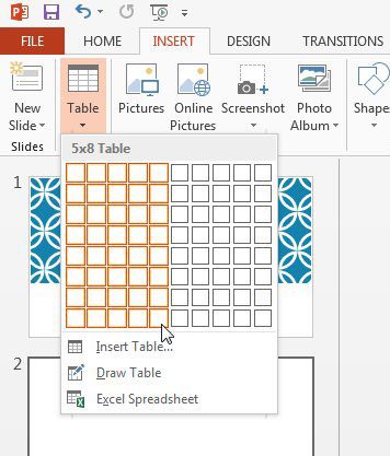 Poniższe kroki pokażą, jak dodać tabelę bezpośrednio do slajdu w prezentacji Powerpoint 2013.