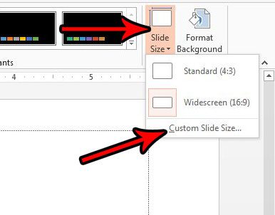 - WybieraćRozmiar slajdu, NastępnieNiestandardowy rozmiar slajdu.