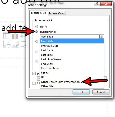 Krok 4: Wybierz tekst lub obraz, który klikniesz, aby otworzyć drugą prezentację.