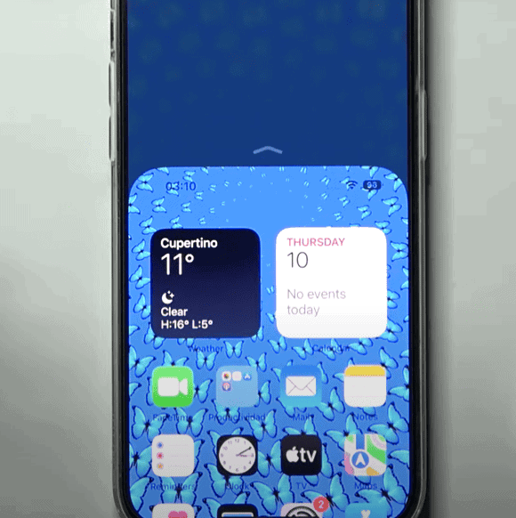 Po włączeniu opcji Osiągalność możesz zminimalizować ekran. Jeśli masz iPhone'a zPrzycisk Strona główna, dotknij go dwukrotnie bez naciskania, aby włączyć opcję Osiągalność. Dla iPhone'ów zIdentyfikator twarzy, przesuń palcem w dół po dolnej krawędzi ekranu, aby opuścić górną połowę i ułatwić dostęp kciukiem.