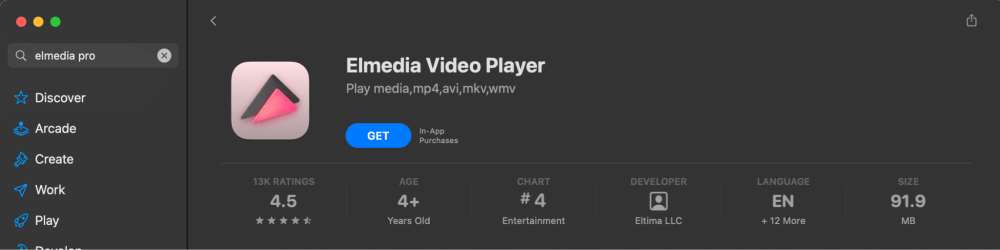 TheOdtwarzacz Elmediajest dostępny dlado bezpłatnego pobrania z App Store. Elmedia to niezawodny odtwarzacz multimediów dla komputerów Mac zgodny z typem pliku .mts. Oferuje także płatną wersję „Pro” z dodatkowymi funkcjami, takimi jak obraz w obrazie, odwracanie, obracanie, lustrzane odbicie wideo i inne.