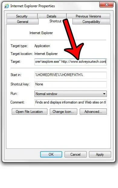 „C:\Program Files\Internet Explorer\iexplore.exe” https://www.solveyourtech.com