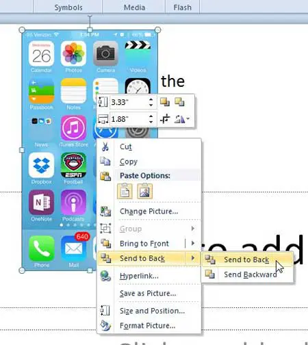 Wykorzysta to aspekt warstw w programie Powerpoint, ponieważ po prostu przeniesiemy obraz za pole tekstowe, wykonując poniższe czynności.