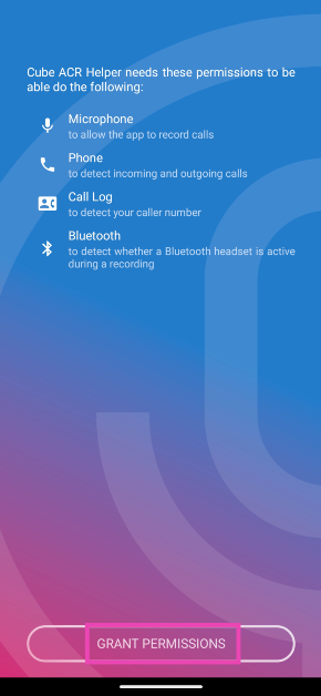 Krok 4:Daj aplikacji Cube ACR Helper to, co niezbędneuprawnienia. Obejmuje toUsługi dostępności.