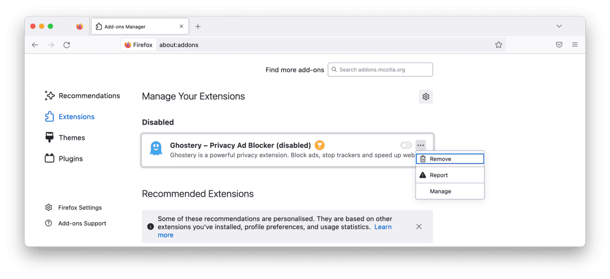 - Następnie naciśnij Usuń na rozszerzeniu, które chcesz usunąć.