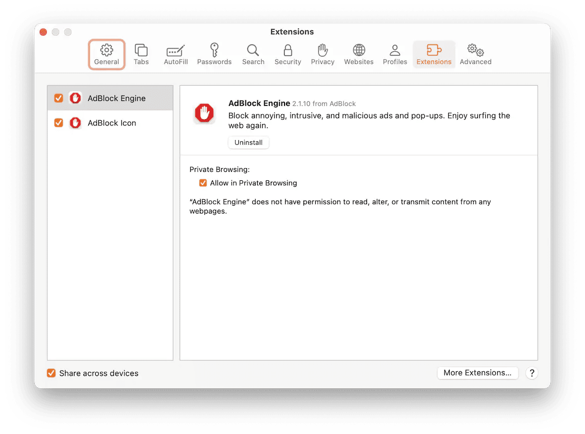 - Otwórz przeglądarkę Safari i kliknij Safari > Ustawienia > Rozszerzenia.