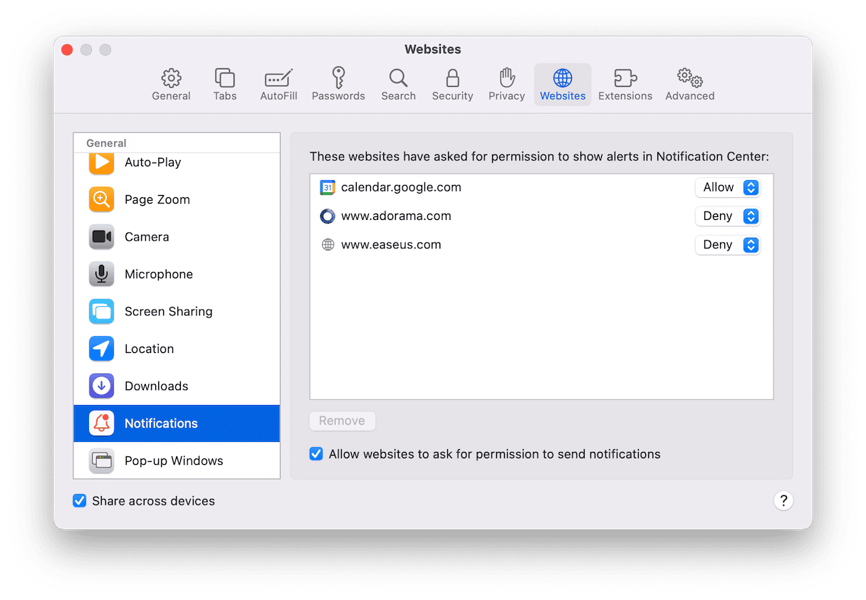 Po usunięciu aplikacji kolejnym krokiem usuwania Omnatuor jest pozbycie się wszelkich zainstalowanych rozszerzeń przeglądarki i wyłączenie powiadomień. Ważne jest, aby zrobić to w każdej przeglądarce zainstalowanej na komputerze Mac, a nie tylko w domyślnej. Pozostawienie któregokolwiek z nich może spowodować jego ponowne rozprzestrzenienie się po komputerze.