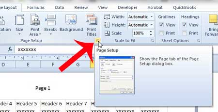Krok 3: Kliknij małyKonfiguracja stronyprzycisk w prawym dolnym roguKonfiguracja stronyczęść wstążki u góry okna.