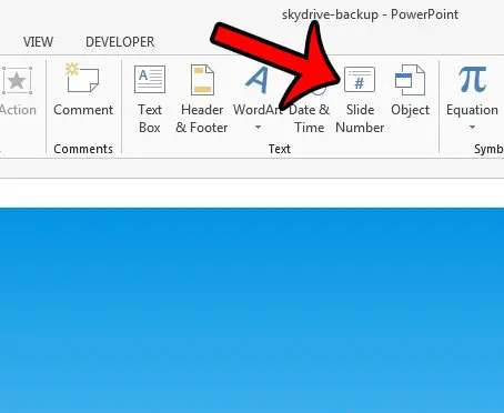 Krok 3: KliknijNumer slajduprzycisk wTekstczęść wstążki u góry okna.
