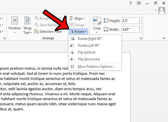 Kroki opisane w tym artykule pokażą, jak wybrać obraz w dokumencie programu Word 2013 i obrócić go w oparciu o jego pierwotną pozycję. Pamiętaj, że nie ma to wpływu na plik źródłowy przechowywany na Twoim komputerze. Masz kilka opcji obracania, takich jak odwracanie obrazu, które powinny pomóc w uzyskaniu pożądanego wyglądu.