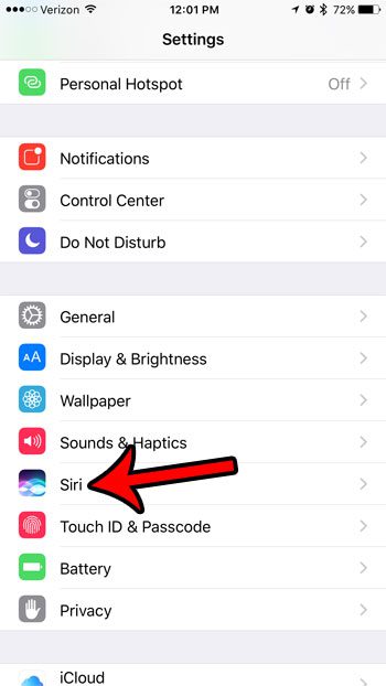 Krok 2: Przewiń w dół i dotknijSiriprzycisk.