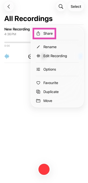 Krok 3:Naciśnij długo plik audio i naciśnijUdostępnij ikonę.