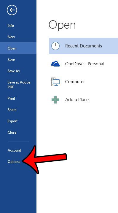 Krok 3: KliknijOpcjeprzycisk znajdujący się na dole kolumny po lewej stronie okna.