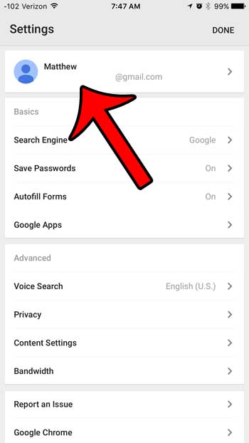 Oto jak wyłączyć synchronizację danych Chrome na iPhonie 6 w iOS 9 –
