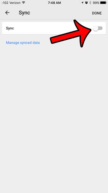 Krok 6: Naciśnij przycisk po prawej stronieSynchronizujaby wyłączyć tę funkcję.