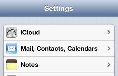 Krok 2: Przewiń w dół i wybierzPoczta, kontakty, kalendarzeopcja.