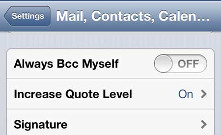 Możesz zatrzymać funkcję automatycznego BCC na iPhonie 5, przechodząc doUstawienia > Poczta >i wyłączenieZawsze sam BCCopcja.