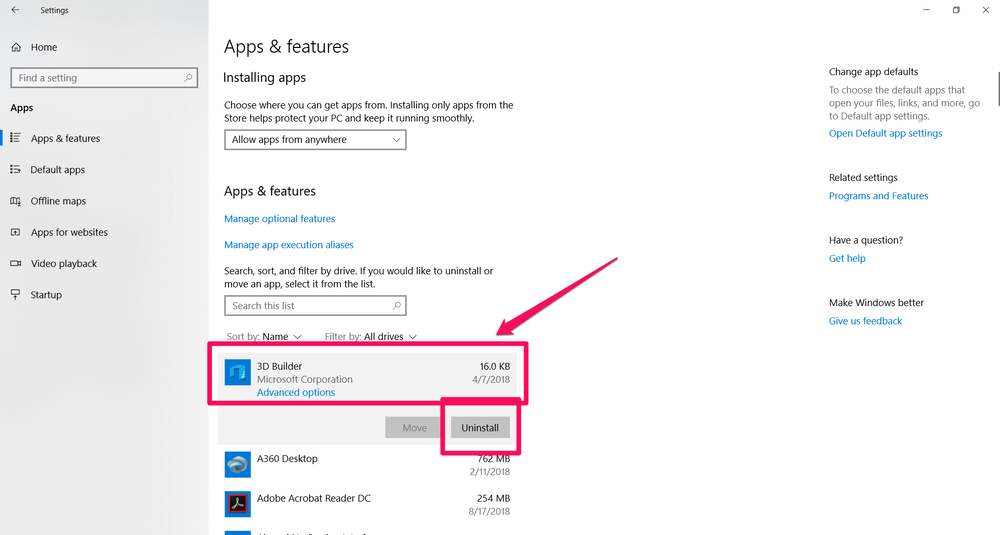 Spowoduje to otwarcie listy wszystkich aplikacji. Aby go usunąć, kliknij go raz, aby wyświetlić opcję Odinstaluj, a następnie kliknij przycisk „Odinstaluj”. Zostaniesz poproszony o potwierdzenie akcji.